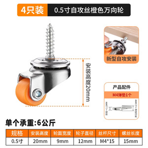 0.5inchM4 ネジ付きユニバーサル ホイール [4 個パック] オレンジ色のナイロン ホイール/セルフタッピング取り付け