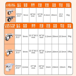 ユニバーサルホイール特小ミニクロールミニゴム滑車穴なし貼り付けホイール0.5インチ方向キャスター