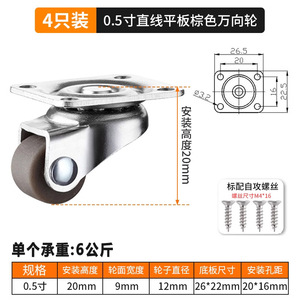 0.5inchM4 ネジ付きユニバーサル ホイール [4 個パック] 茶色のゴム ホイール/セルフタッピング取り付け