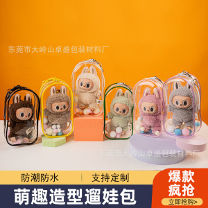 ダブルスライダー透明バッグ + 吊り下げバックル + ファーボール (赤ちゃんは含まれません)