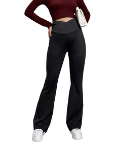 クロスボーダー妊婦ワイド脚長ズボンクロス腹ベルトハイウエストカジュアルスリム妊婦ラッパズボン欧米妊婦服