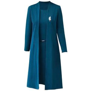 中高年のお母さんの秋服ワンピース2点セット、おしゃれな40代女性の春秋用ウインドブレーカーコートセット、アーティスティックでレトロなスタイル