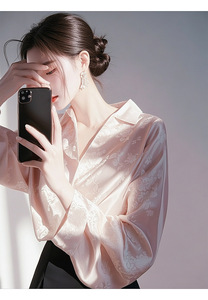新中国式高級国風ピンクサテンジャカードシャツ女性2025早春盤ボタン上着改良唐服シャツ