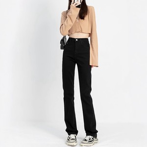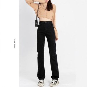 2025春の黒いストレートジーンズの女性の新しい高腰が高くて痩せています。