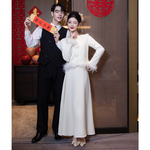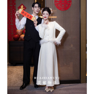 白の婚約ドレス2025新作花嫁結婚敬酒服小香風スーツスカート春夏高級感