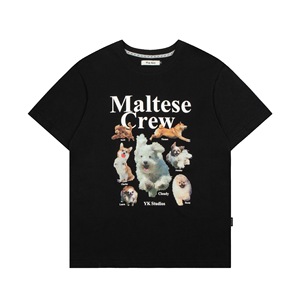 韩国waikei多只奔跑狗狗金艺琳同款春夏T恤圆领宽松夏季情侣同款