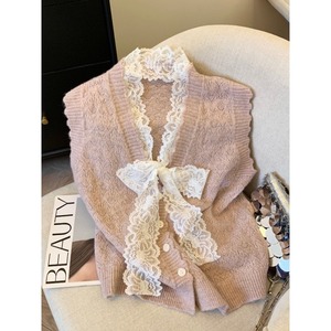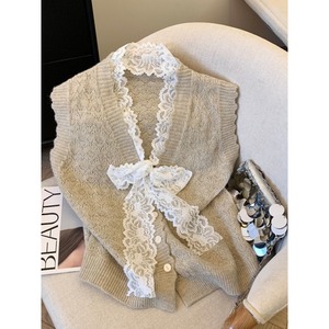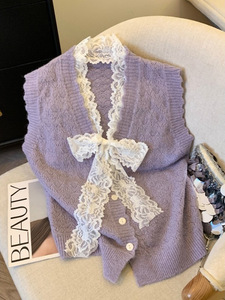 小香風レースの蝶結びのベストニットの女性のタイプ2025新型秋冬の外はセーターのベストを重ねて着ます。