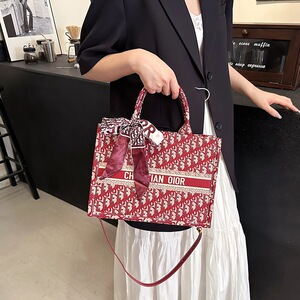 軽豪華大容量刺繍ハンドバッグ2025新品外出百合レディースバッグサラリーマン通勤トートバッグ