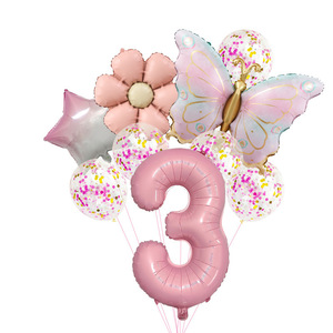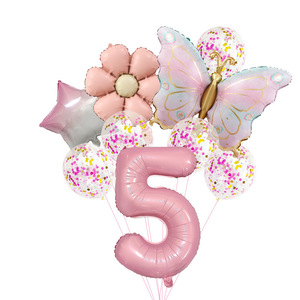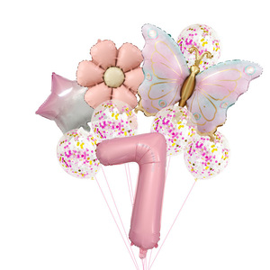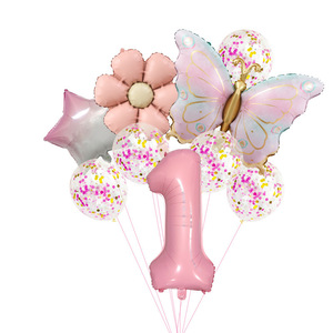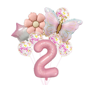 クロスボーダーtemuつや消しデイジーピンク蝶スタイリングデジタルバルーン赤ちゃんお風呂誕生日パーティーアレンジ