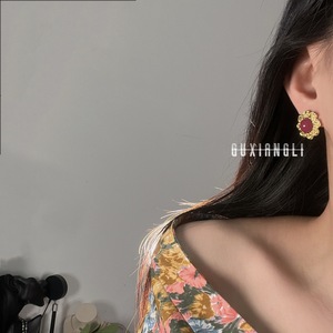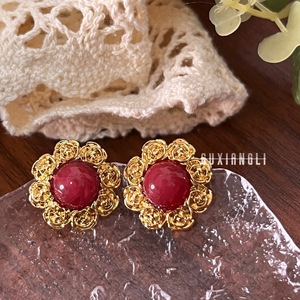 【黒梅ソース】文学レトロパープル小さめエンボスローズライト高級ピアス シンプルピアス A03