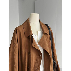 2025新型秋着 ~ 韓国版カラメル色の襟付き純色の長い通勤単列ボタン風衣女性が起爆した