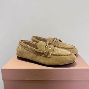 全牛皮 ~ iu家の平底楽福靴女性2025新手作業で古い蝶ネクタイ茶色の靴の靴を作る