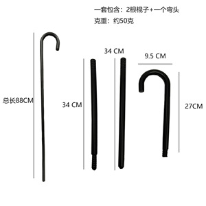 FBL ブラック 2 セクション スティック ブラック 松葉杖