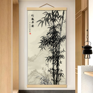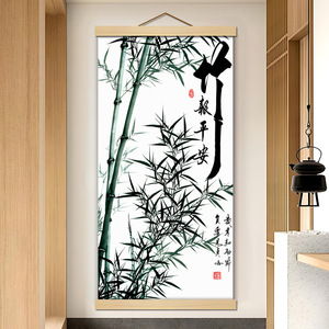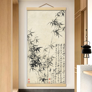 M38竹新聞平安石竹図竹掛け絵書斎リビング玄関巻物飾り絵鄭板橋竹絵