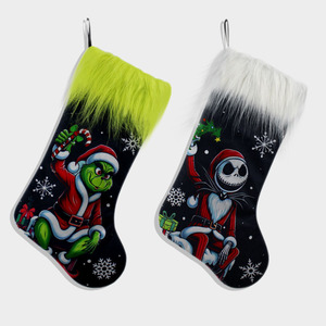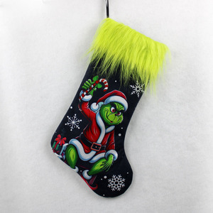 国境を越えた新しいクリスマス靴下プレゼント袋クリスマス創意グリンチクリスマス靴下緑毛怪キャンディー袋鬼顔