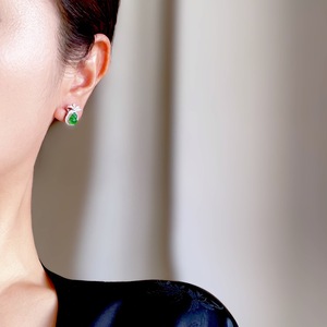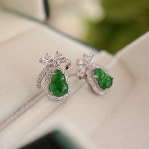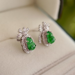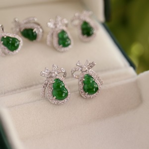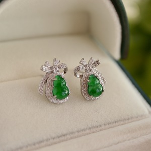 天然翡翠ヒョウタンピアス帝王緑翡翠純銀イヤリングアクセサリー新作ジュエリーライブソース