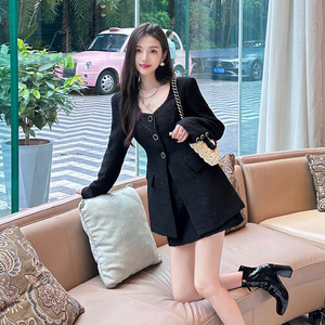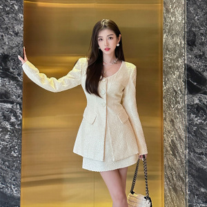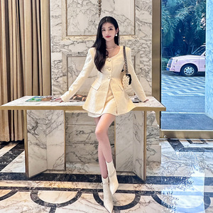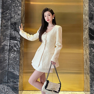 富家千金気質高級感小香風スーツ秋冬コートスーツ半身スカート2点セット