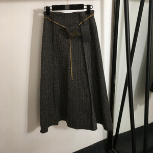 深セン南油貨高級婦人服外貿高級人気新作ハードウェアチェーンウエストバッグハイウエストプリーツミディスカート