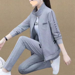 お母さんは春と秋のスポーツウェアの女性2025の新型韓国版カジュアル中高年の大きいサイズの婦人服の3つのセットを詰めます。