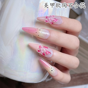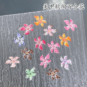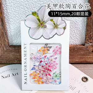 赤い本のネイルの花の装飾品の柔らかい陶のユリの花の装飾の爪のアップリケの装飾品の樹脂のネイルの漫画の装飾品