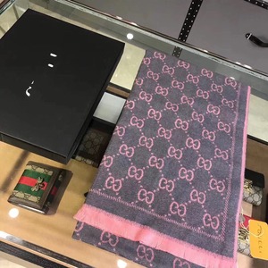 秋冬の定番マフラーのジャカードのロゴの両面の黒い灰色のストールのウールの男女の灰色の粉の大きい札のアルファベットのGは首を囲みます