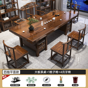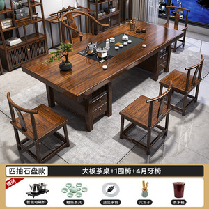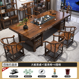 木造の大きい板の茶のテーブルと椅子の組み合わせの新しい中国式のお茶のいくつかのオフィスの家庭用のお茶の一体のセットの禅の意のお茶のテーブル
