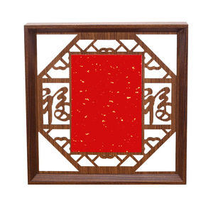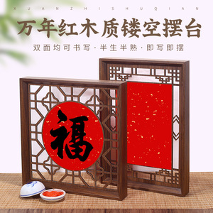 中式窗格宣纸挂件木质镂空春节装饰万年红双面书法创作硬卡纸批发