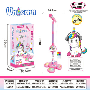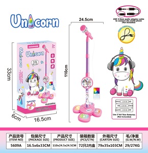 子供のマイクの拡声音楽の子供のマイクはスタンドを持って立っているカラオケの赤ちゃんの歌のおもちゃをシミュレーションします。
