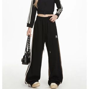 NERESUMヒョウ柄のガードルの女性のアメリカのレトロなヒップホップのゆったりしたファッションのストライプのスポーツのストレートカジュアルなズボン