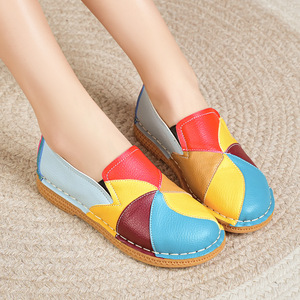 民族風の手作りの本革の色合わせの靴の女性の平と女性の靴のカジュアルな靴の柔らかい底の柔らかい面の妊婦の靴の運転靴