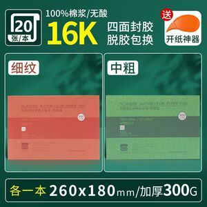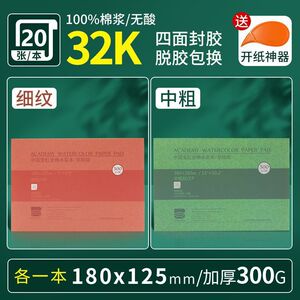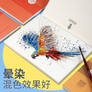 宝虹水彩本中国保定糊水彩紙300g細目水彩画紙四面シール水彩本