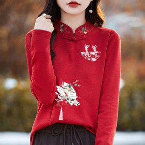 Z5L2025秋冬新作両面ドイツ製ベルベットレディース刺繍プリントゆったり着痩せインナーウェア中国風