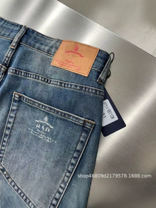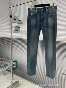 プラpraの新しいアルファベットのロゴのプリントのカジュアルなジーパンの男性の小さい足のズボンのP家の三角の標識のジーパン