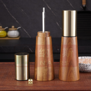 ステンレスの胡椒は手動の海塩のサンショウの研磨器のアカシアの木の台所をつぶします。