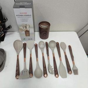 新型シリカゲル調理器具セット11点セット金メッキ木目柄不粘着鍋高温家庭用炒め物シャベルスプーン