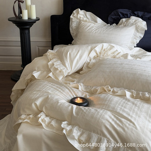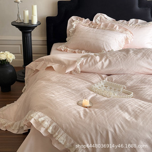 フランス式プリンセス風100s綿綿ロングベルベット綿功サテンジャカード4点セット綿レースのフリルの縁にベッド用品をはめる