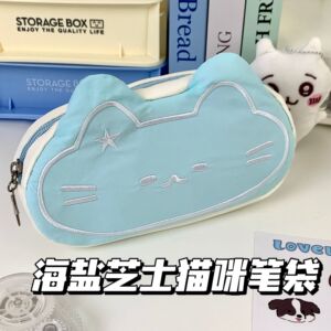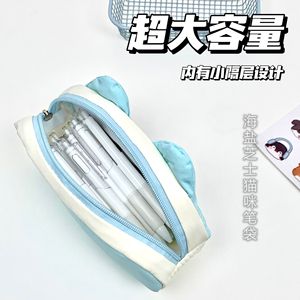 かわいい青い海塩猫ペンバッグins風高颜値大容量文房具収納バッグ学生鉛筆袋