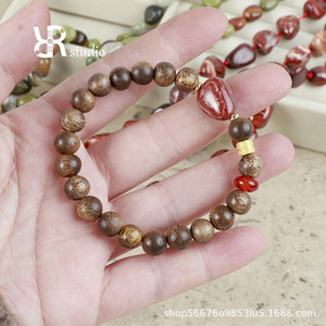 天然アラジン随形牛油果散珠紅石手作りビーズdiy部品文遊びブレスレットネックレス部品