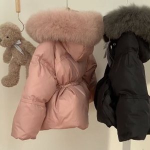 韓国版の女の子2025ダウン綿服の新型冬服の洋風冬の赤ちゃんの保温毛襟綿のコートの流れ