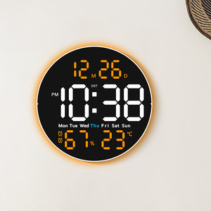 新しいリビングルームの掛け時計ナイトライト付き電子時計多機能家庭用時計温度湿度静音時計6672