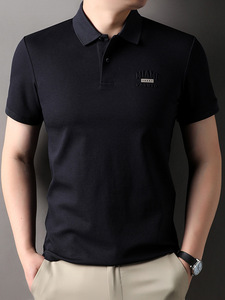 純綿半袖tシャツ男性ファッションブランド夏高級襟付きカジュアル男性刺繍薄いボディシャツの震え音が爆発した