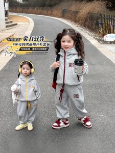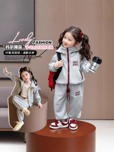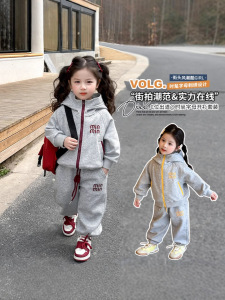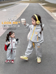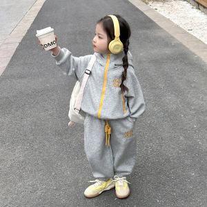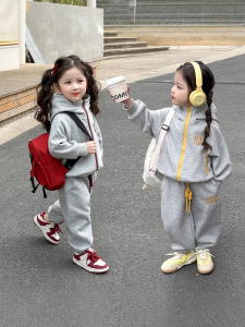 女の子スポーツスーツ2025新作春服韓国版帽子付きカジュアルベビー服2点セット春と秋の雰囲気