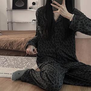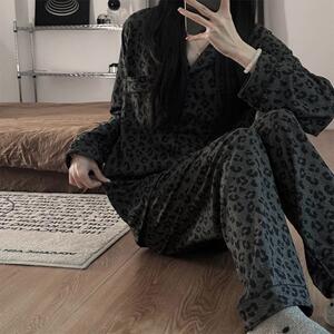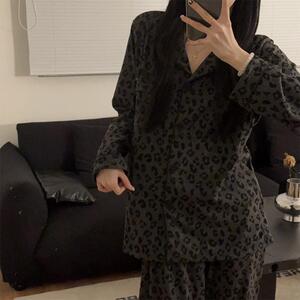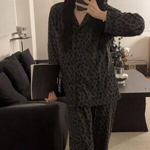 高級感レオパードパジャマレディース春秋純綿長袖ロングカジュアルカーディガン快適ホームウェア外着可