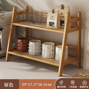 Ins藤編シンプル二重デスクトップ棚コップ化粧品スナック収納棚手作り整理棚