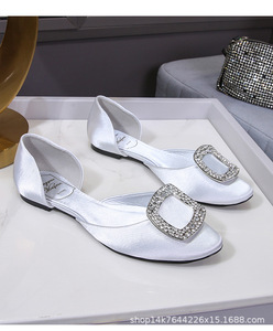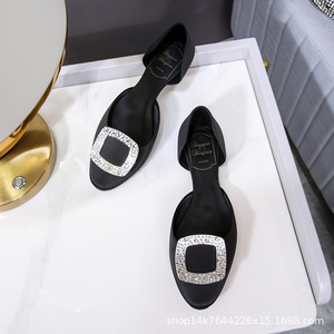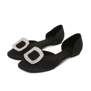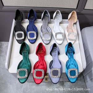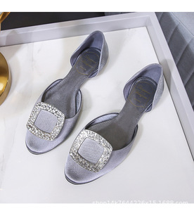 QGMR2025春の丸いサテンの欧米の靴のスリーブの中空サンダルの軽いフラットサンダルのメーカーの卸売り