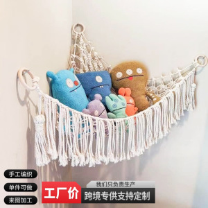 おもちゃ三角網兜手編み綿紐壁角収納寝室壁角収納網玩具公仔ハンモック