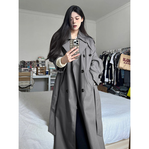 【錦裳】グレーのトレンチコート レディース ミドル丈 2025年新作 早春秋 韓国風 小柄さん向け 高級感漂う