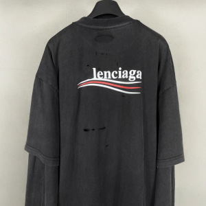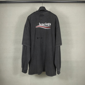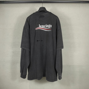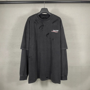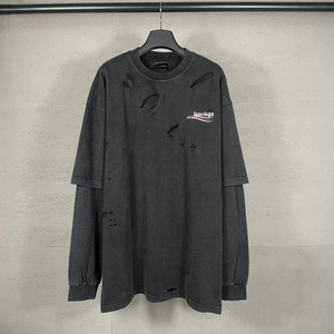 巴黎高版本25新款B家可乐字母经典LOGO印花洗水磨烂两件套长袖T恤