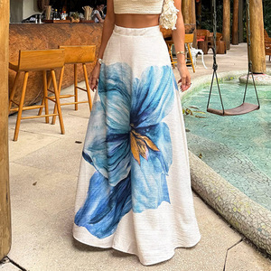 春のリゾート風の外国貿易の花のプリントA字は半身のスカートの優雅な雰囲気の質感の感じのメリヤスのロングスカートの婦人服を並べます。