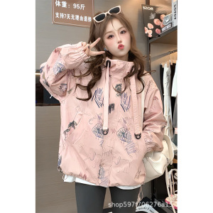 2025年の新型デザイン感落書きプリントと帽子の突撃服のコート